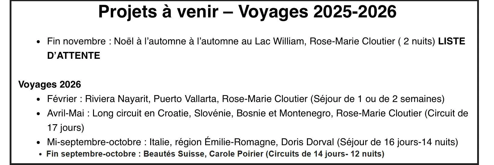 Informer adéquatement les participants sur les consignes à suivre et en assurer le respect lors du voyage.